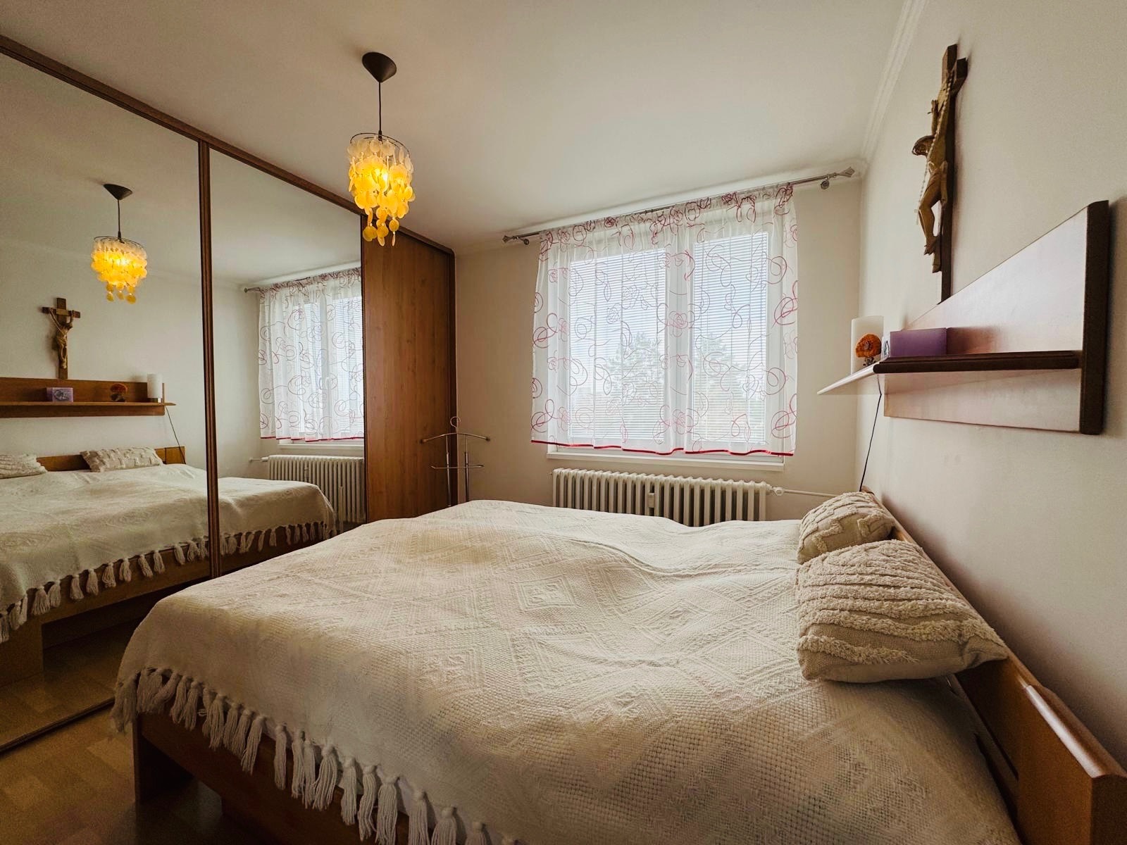 Spálňa aj detská izba sú vybavené vstavanými skriňami, ktoré ponúkajú množstvo úložného priestoru. Kuchyňa je plne vybavená a praktická špajza poteší každého, kto rád varí.