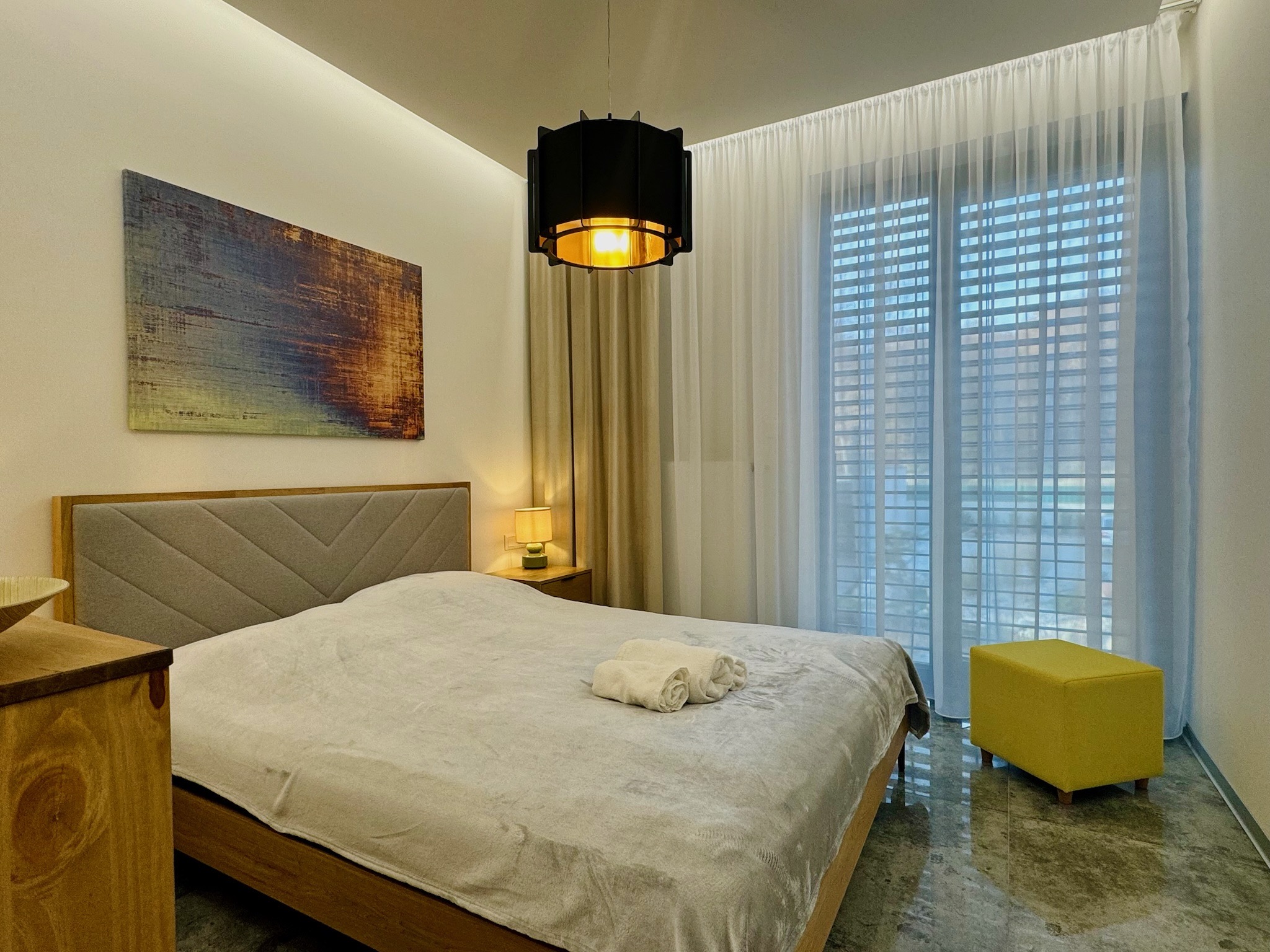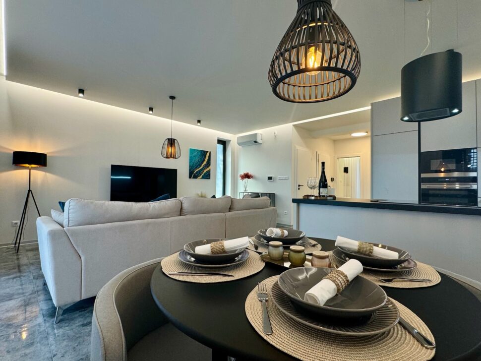 Výhodou tohto apartmánu je moderné a vkusné zariadenie so špičkovými materiálmi, klimatizácia v každej izbe ako aj podlahové kúrenie.