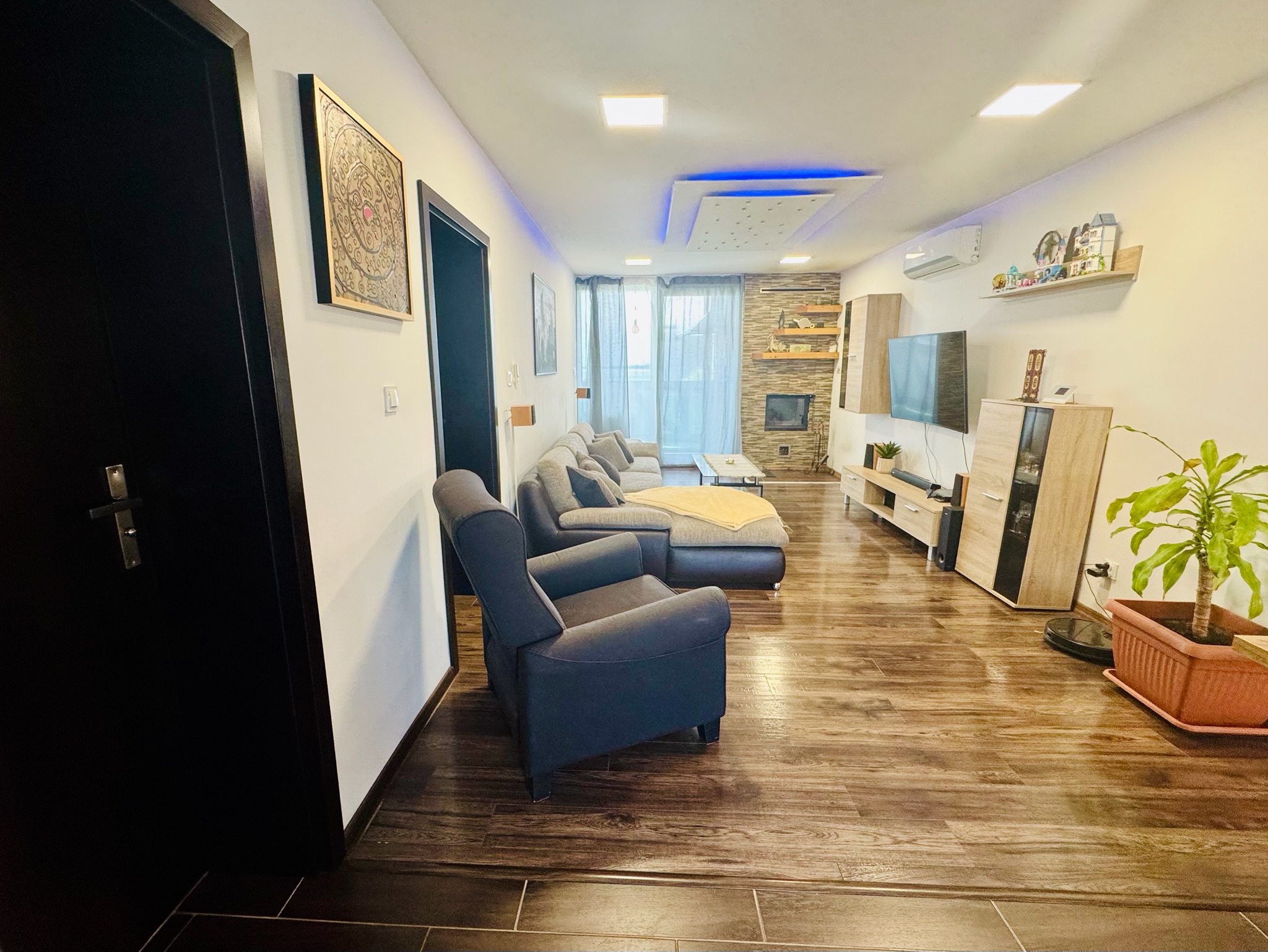 Apartmán je plne klimatizovaný a vybavený inteligentným systémom ovládania domácnosti na diaľku. Osvetlenie sa automaticky prispôsobuje západu slnka, čo zvyšuje komfort aj energetickú efektivitu. Pripojenie na internet je zabezpečené prostredníctvom optickej siete, čo umožňuje bezproblémovú prácu na diaľku alebo správu online rezervácií.